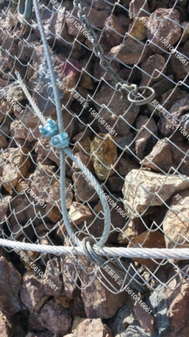 以柔和性鋼繩網系統覆蓋有在危巖落石的坡面,其橫交錯的16撐和16橫向支撐繩與4.5mx4.5m,實際施工中可根據地形條件在4.2m~4.8m作當調正方模式置的桿相聯,繩構成的每個4.5mx4.5m網格內鋪設一張4mx4m的D0/08/300型鋼繩網,每張網與周支繩用合繩合聯并進行預張拉,該預張拉工藝能使系統對坡面施以一定的法向預緊壓力,從而提高邊坡表面危巖體的穩定性,止塌落石的的發生,同時,在鋼繩網下鋪設小網孔的S0/2.2/50型格柵網,以阻止小寸巖塊的塌落。折疊產品用途系統的開放性,地下水可以自由排泄,避免了由于地下水壓力的升高而引起的邊坡失穩問題;該系統除對穩定邊坡有一定貢獻外,同時還能抑制邊坡遭受進一步的風化剝蝕,且對坡面形態特征無特殊要求,不破壞和改變坡面原有地貌形態和植被生長條件,其開放特征給隨后或今后有條件并需要時實施人工坡面綠化保留了必要的條件,綠色植物能夠在其開放的空間上自由生長,植物根系的固土作用與坡面防護系統結為一體,從而抑制坡面破壞和水土流失,反過來又保護了地貌和坡面植被,實現最佳的邊坡防護和環境保護目的。